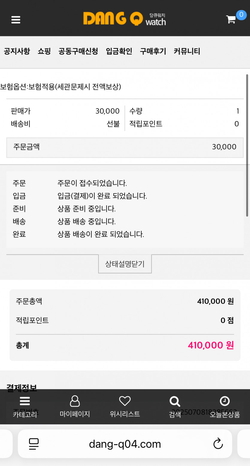 당큐워치 작성일통관부호 미입력으로 출발대기중입니다 텔레그램문의만 받고 있으니 텔레그램으로 메세지보내주세요